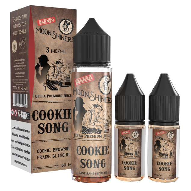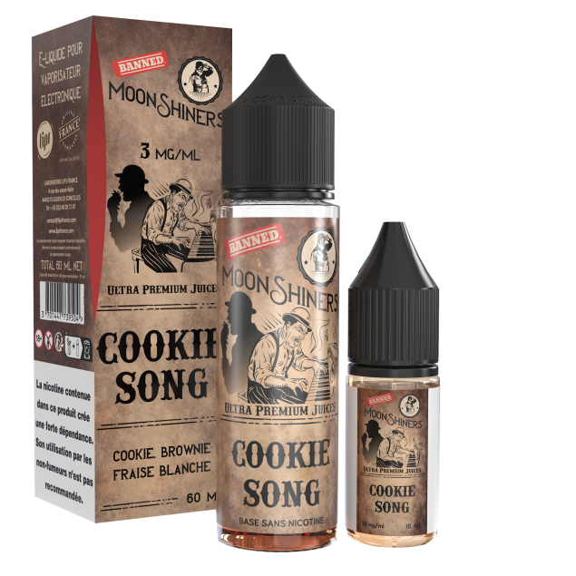 Bei Moonshiners sind Dessert-Aromen besonders üppig, wie zum Beispiel Cookie Song: eine feine Kombination aus Cookie und Brownie auf Basis von weißen Erdbeeren.