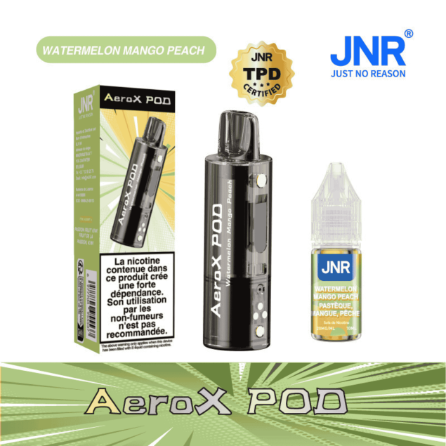 Lust auf noch mehr Vape mit deiner Aerox-Puff von JNR? Die Ersatzkartusche Aerox Pod verlängert das Vergnügen mit einem brandneuen Pod und einem E-Liquid mit dem Geschmack Wassermelone-Mango-Pfirsich. Damit erhältst du etwa 16.000 Züge!